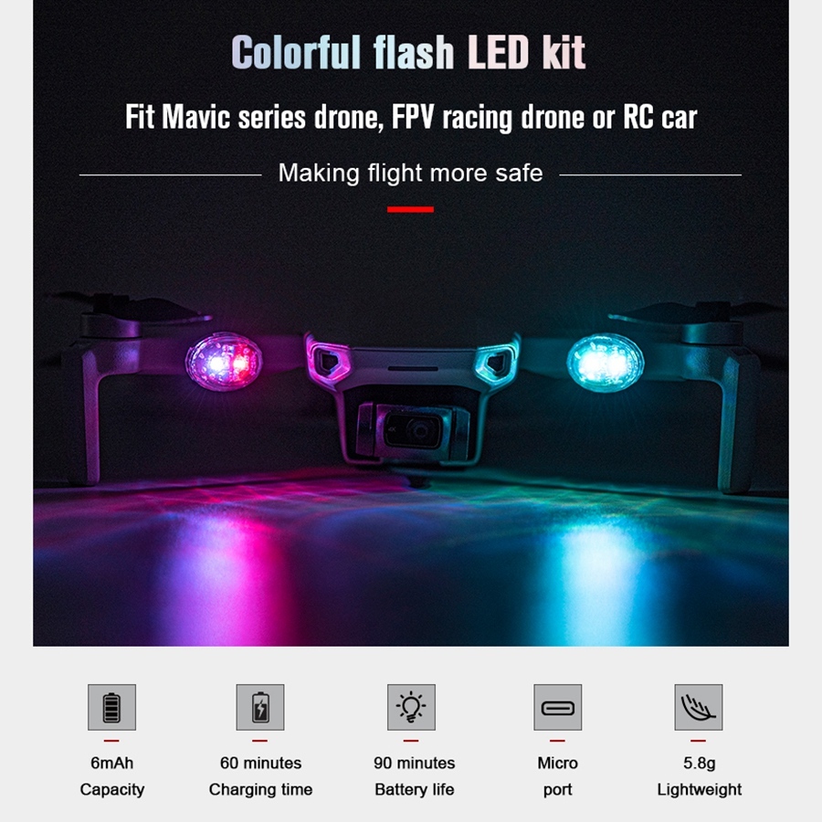 Светодиодные фонари для дронов для Mavic Air 2S Crossing Machine Модели автомобилей Ночной полет Перезаряжаемые красочные мигающие огни