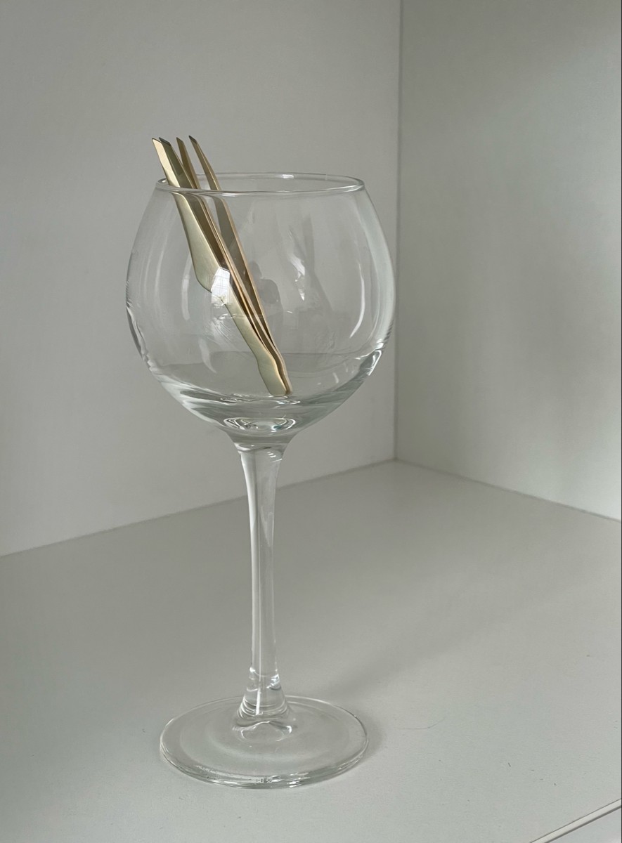 Пинцет 2 штуки для коррекции бровей скошенный ручной заточки Solinberg G805 золотой