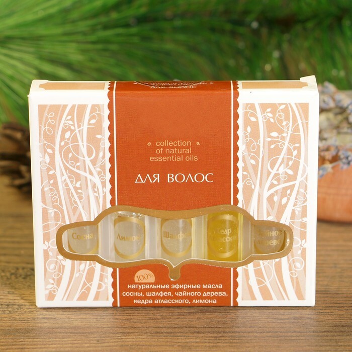 Набор эфирных масел "Для волос", 5 шт: сосна, шалфей, чайное дерево, кедр, лимон х 2 мл Набор для ароматерапии 2 мл