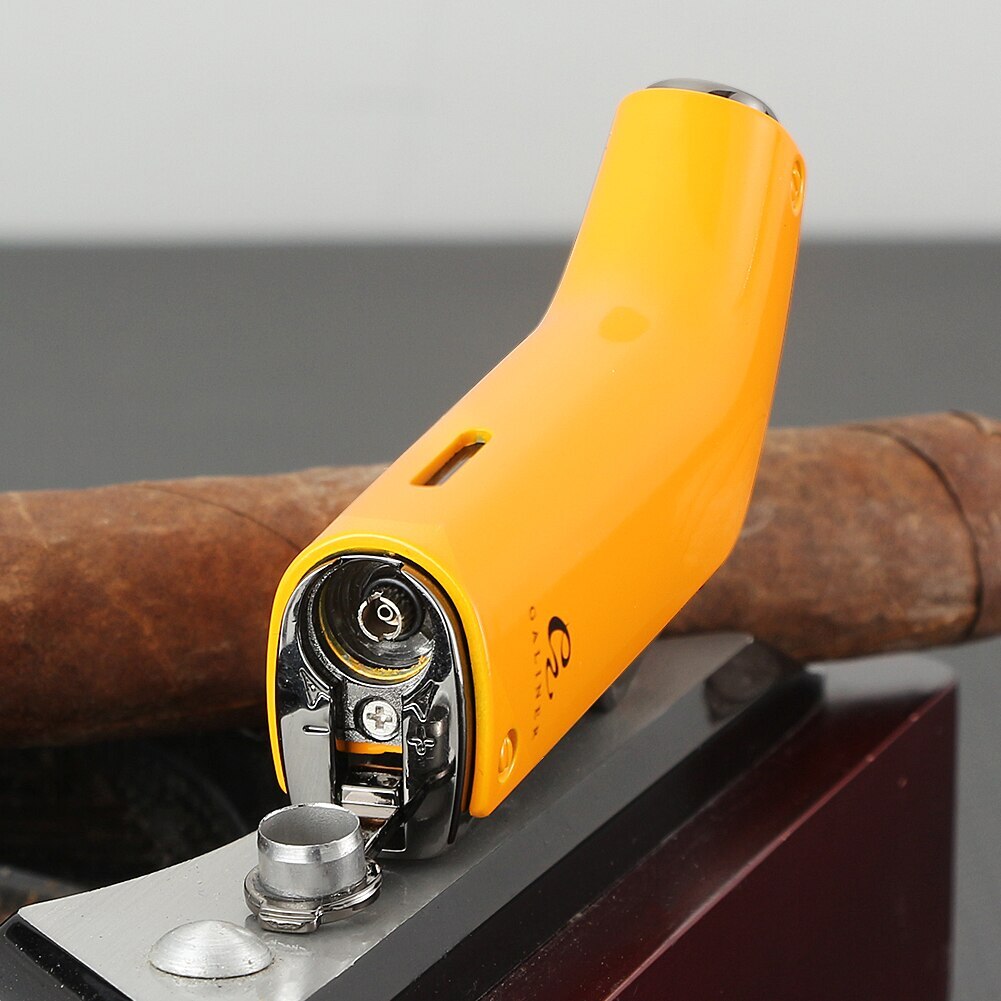 Ветрозащитный факел Зажигалка Турбо Портативный Бутан Газовая сигара Зажигалка Бокс желтый