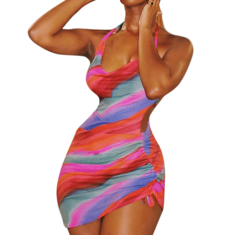 Женская вечеринка Бассейн Радуга Халтер Холтер Платье Цветочный Цвет L