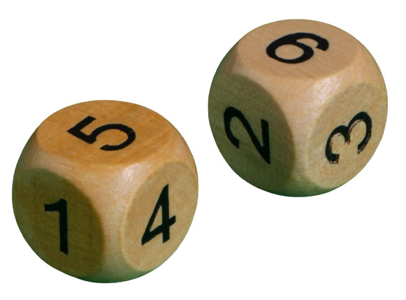 Деревянные игральные кубики (кости) с цифрами, размер 2х2 см., 2 шт.