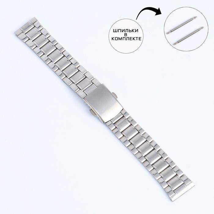 Ремешок для часов 20 мм, металл, протектор звенья, хром, 18 см, хром