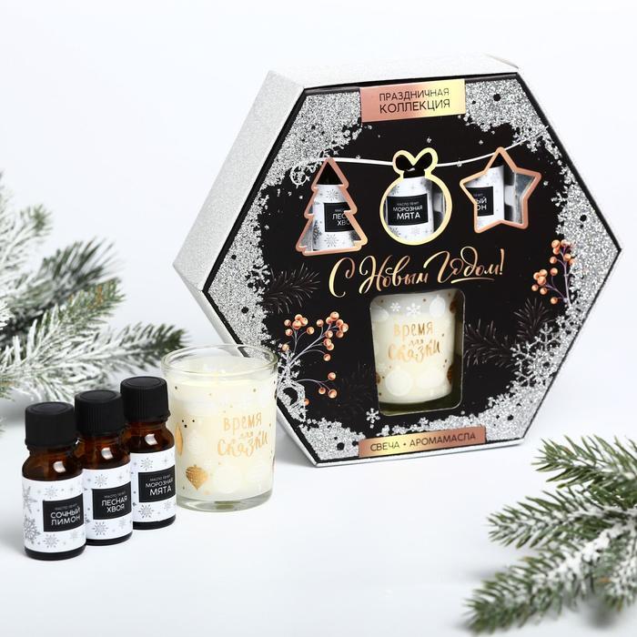 Подарочный набор С Новым годом: аромамасло 3 шт, свеча (Комплект из 2 шт)