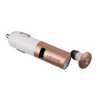 Блок питания автомобильный 1 USB Usams LT Series 1000mA алюминий с гарнитурой Bluetooth золотой