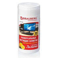 Влажные салфетки Brauberg для экранов и пластика Лимон 100шт универсал туба