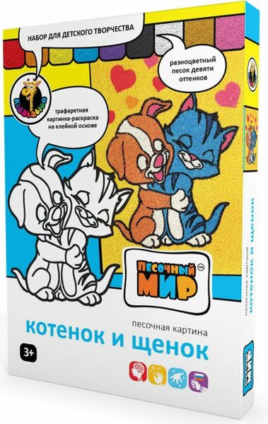 Фреска из песка Песочный мир Котенок и щенок