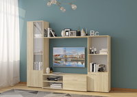Стенка Эстель "Хьюго" (Дуб сонома светлый, ЛДСП/Стекло, Дуб сонома светлый)