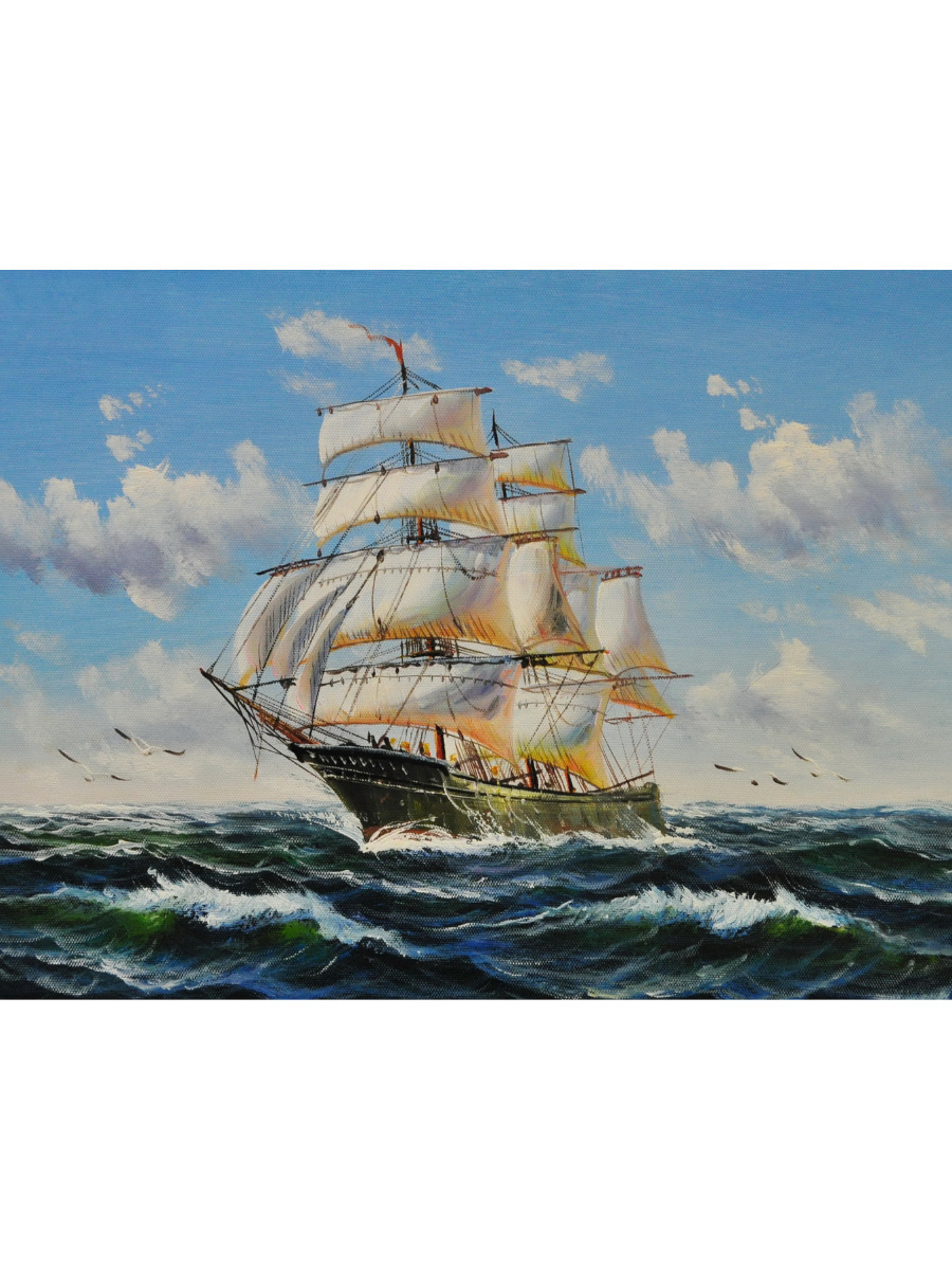 Картина маслом ручной работы на подрамнике 30х40 см "Корабль. На всех парусах"