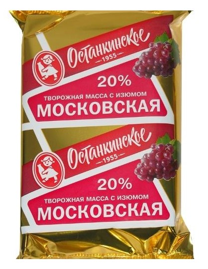 Творожная "Останкинское" Московская масса с изюмом 20%, 180г
