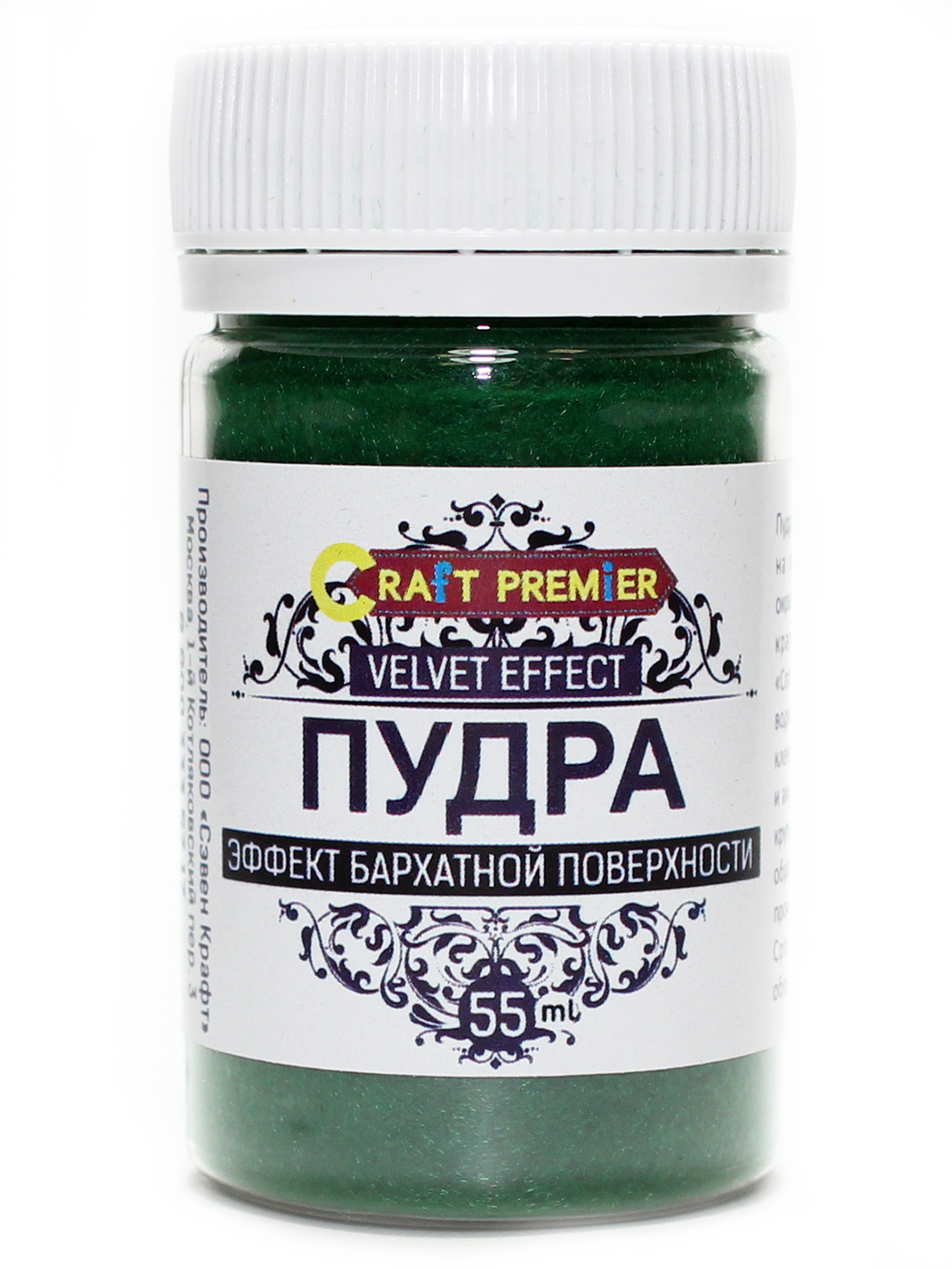 Пудра - эффект бархатной поверхности, 55мл, "Craft Premier", зеленый