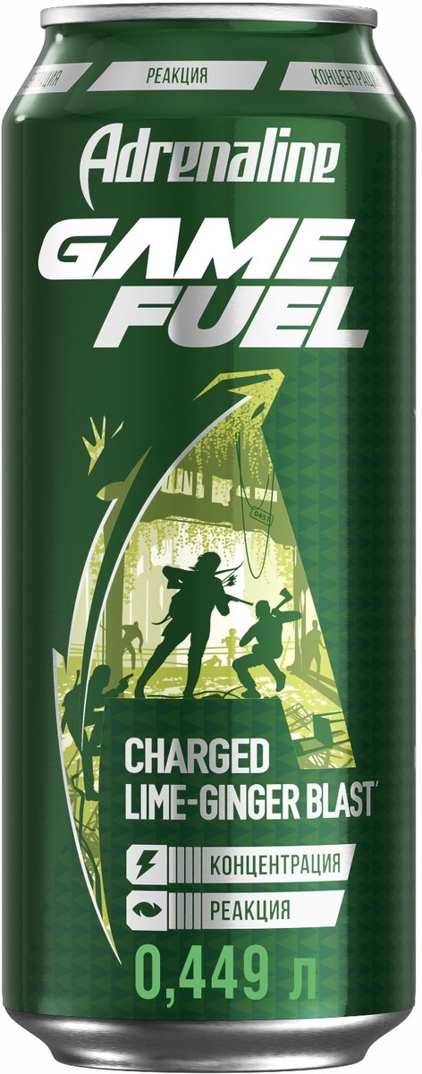 Энергетический напиток Adrenaline Game Fuel Игровая энергия, лайм-имбирь, 449 мл