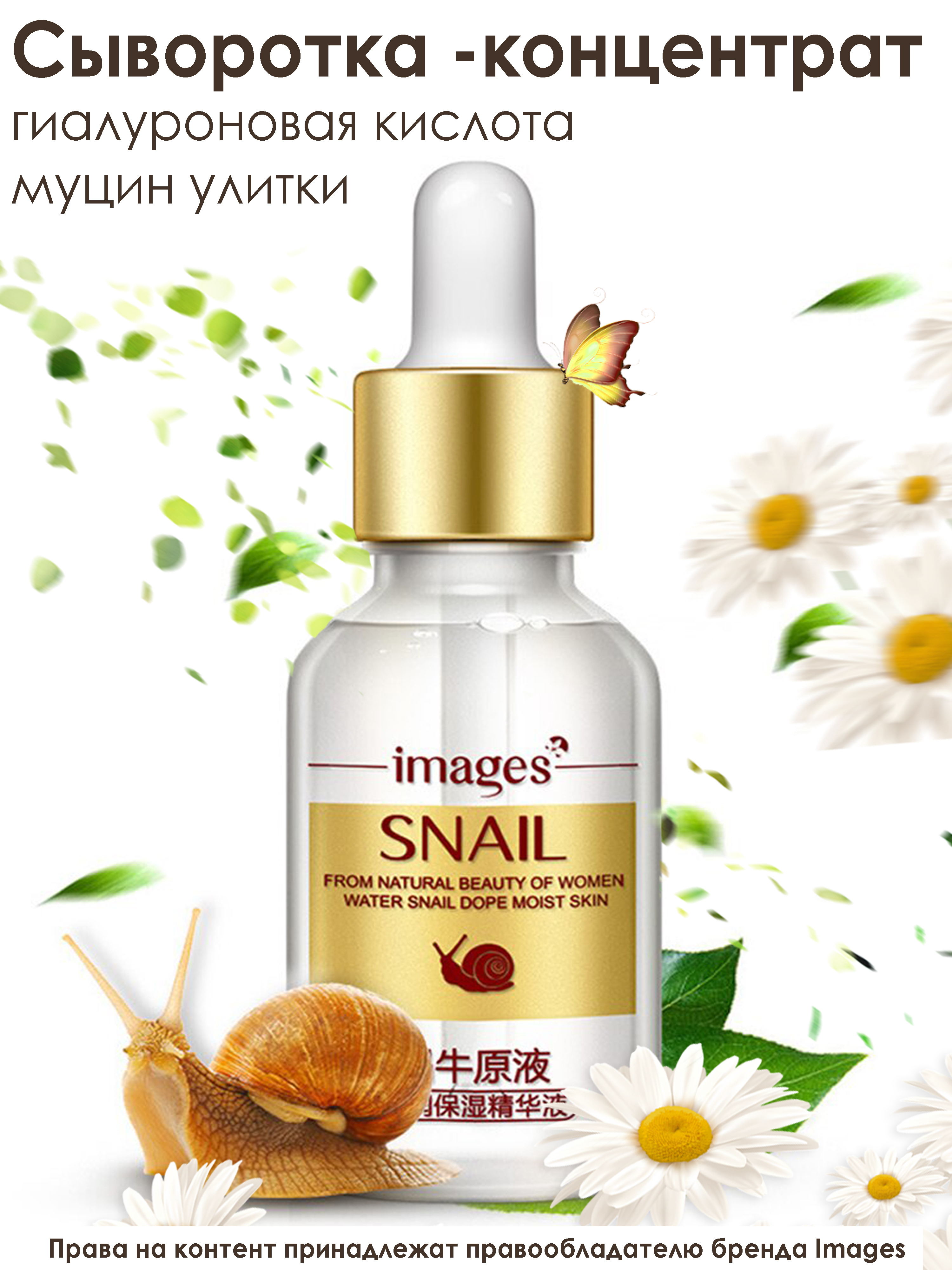 IMAGES Сыворотка-концентрат для лица с гиалуроновой кислотой, муцином улитки и овсом 15ml