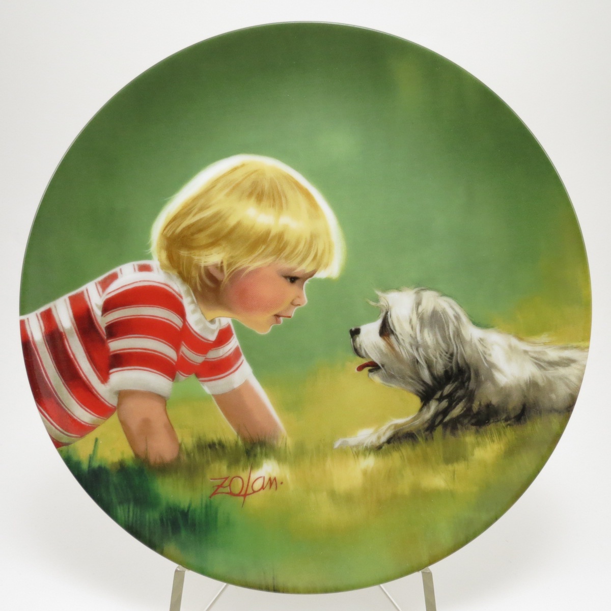 Винтажная декоративная коллекционная тарелка "Дети и Животные: Заводя Друзей". Фарфор, деколь. США, Pemberton & Oakes, Дональд Золан, 1985