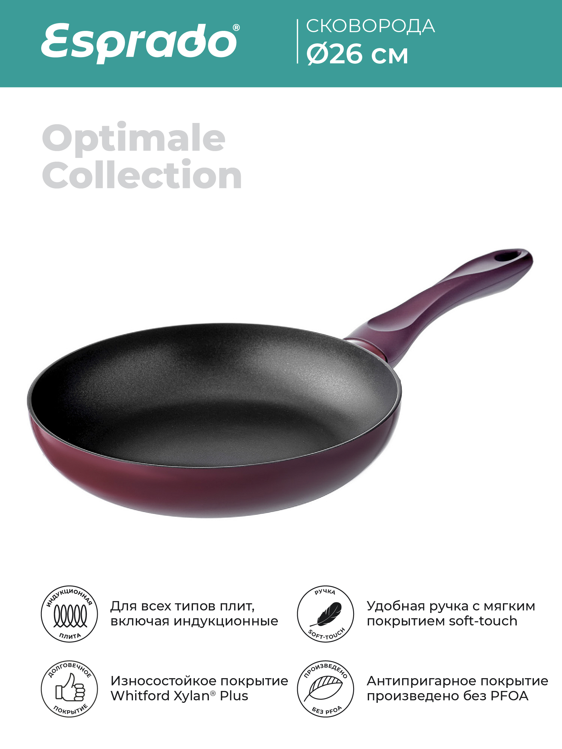 Сковорода 26 см Esprado Optimale из алюминия с антипригарным покрытием , подходит для индукционной плиты