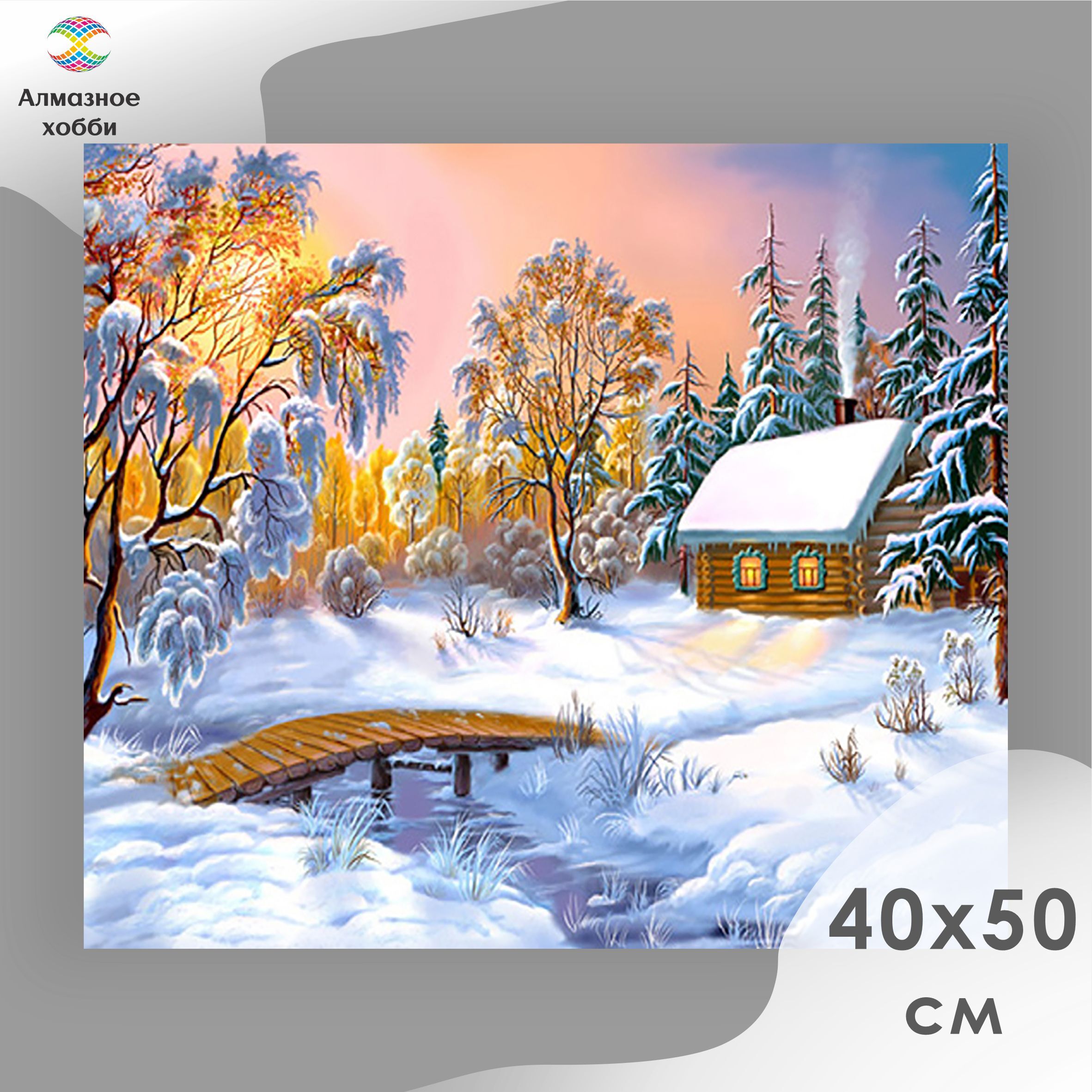 Алмазная мозаика/Алмазная вышивка/Живопись/ Картина стразами/ Алмазное хобби "Зимний домик у реки" 40х50