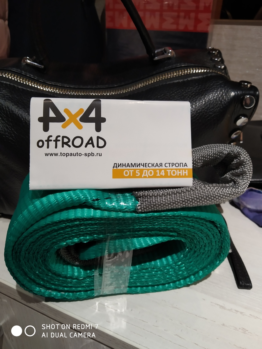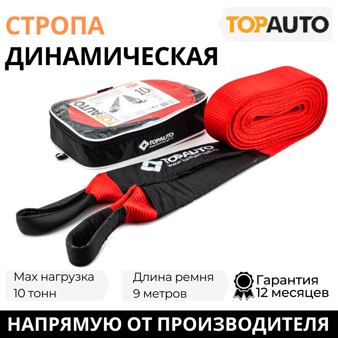 Динамическая стропа рывковая "ТОП АВТО" 10 т, 9 метров, шириной 70 мм, сумка, ДС109