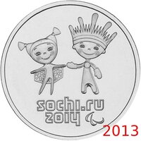 Монета 25 рублей 2013 Олимпиада в Сочи "Лучик и Снежинка", в блистере (сочинская) Y230801