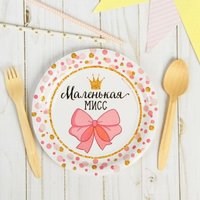 Бумажные тарелки одноразовые 18 см с рисунком Маленькая мисс, 10 шт