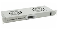JG02 Вентиляторный модуль Cabeus 19" 220V 1U 45х480х170 мм (ВхШхГ) вентиляторов: 2 поток: 300 м3/ч для шкафов цвет: серый (с цифровым термодатчиком)