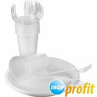 Набор одноразовой посуды на 10 человек SHL "Столовый" (тарелки, стаканы, вилки) бело-прозрачный полистирол
