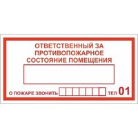 Знак безопасности DP01 Ответственный за противопожарное состояние помещения (плёнка.200х100), 10шт. в упаковке