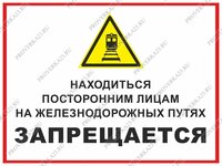 Знак КЗ 27-«Находиться посторонним лицам на железнодорожных путях запрещается»