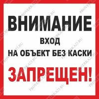 Знак «Внимание! Вход на объект без каски запрещен» (надпись)