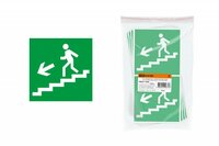 Знак фотолюминесцентный 'Направление к выходу по лестнице вниз (налево)' (ГОСТ Р 12.2.143–2009) 200х200 мм