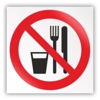 Знак на пленке P30 «Запрещается принимать пищу» (самоклеящаяся наклейка, 200х200 мм)