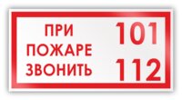 Знак на пленке «При пожаре звонить 101, 112» (самоклеящаяся наклейка, 300х150 мм)