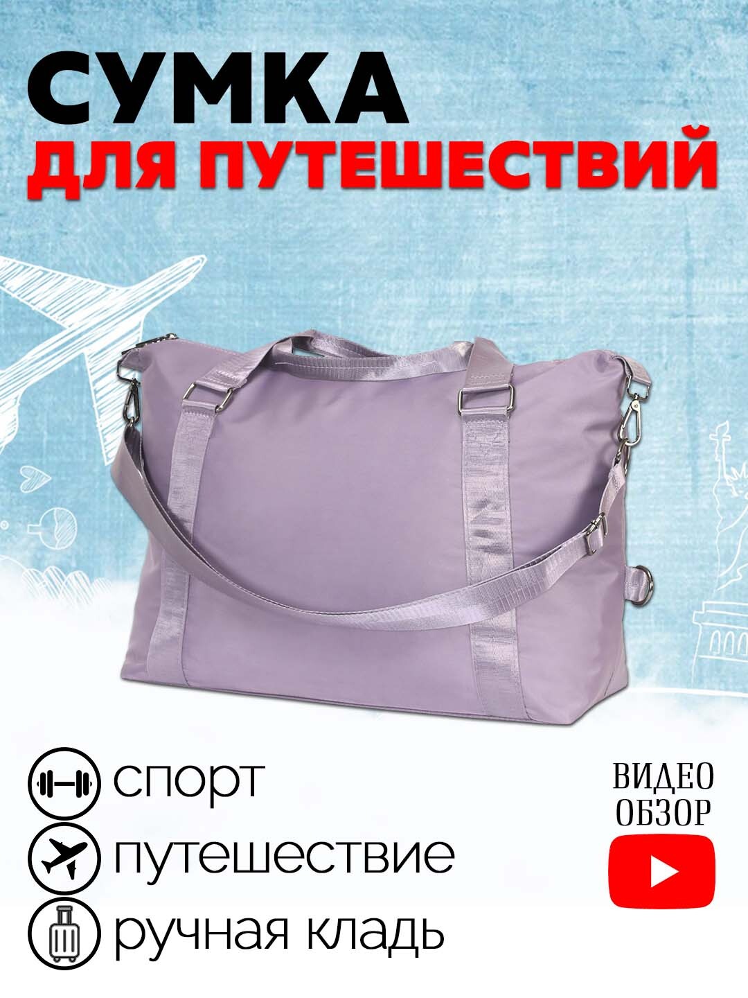 Сумка дорожная / сумка через плечо / сумка фиолетовая женская / сумка спортивная