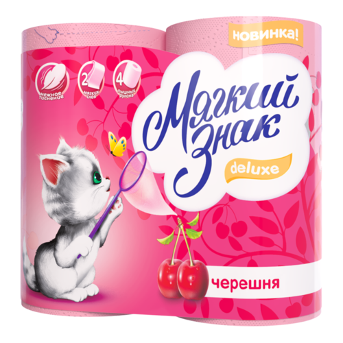 Туалетная бумага Мягкий знак Deluxe Черешня двухслойная