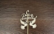 Тсв09-02-0000 Топпер "Свадебный" "С Днём свадьбы!" с голубями (шир.7,5см; выс.8,5см) неокраш. на пал