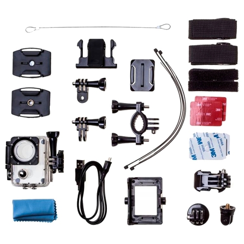 Комплектацияводонепроницаемый бокс, основное крепление, крепление на руль велосипеда, крепление для плоской поверхности, крепление для изогнутой поверхности, адаптер и неподвижное основание, адаптер-кронштейн 1, адаптер-кронштейн 2, рамка, клипса, крепление в форме б