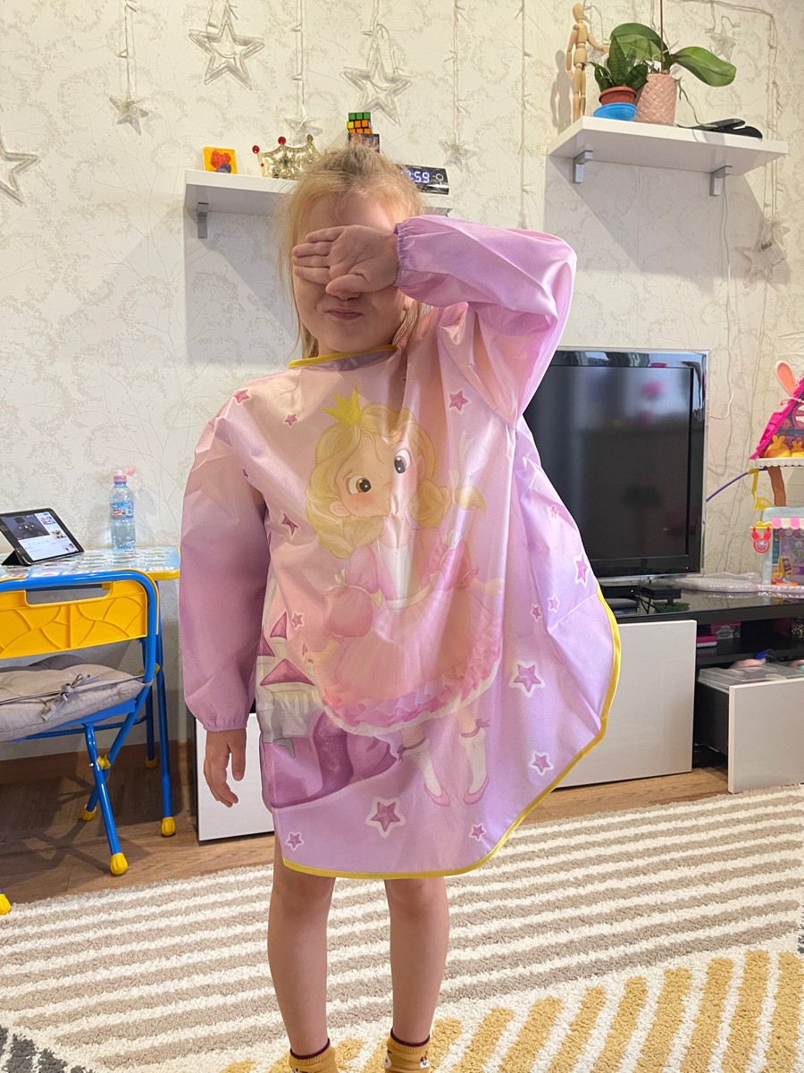 Фартук для творчества детский Принцесса. Фартук для детского творчества с ярким и красочным дизайном сделает творческие занятия вашего ребенка более интересными, а так же защитит одежду от загрязнений. Выполнен из высококачественного водоотталкивающего ма