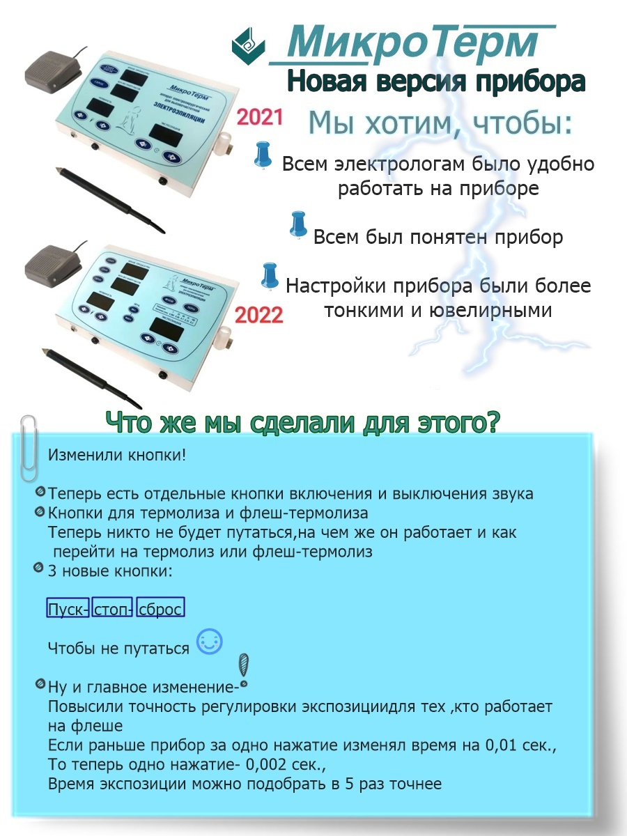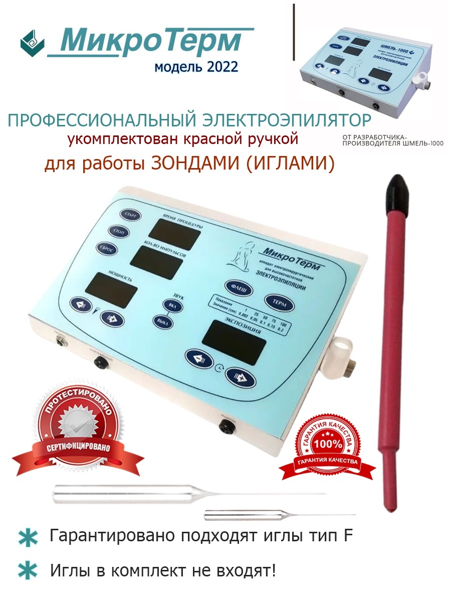 Игольчатый профессиональный электроэпилятор «МикроТерм» служит для удаления волос методом высокочастотного флеш-термолиза.Принцип действия электроэпилятора: в волосяную фолликулу вводится игла для электроэпиляции. Через нее проходит высокочастотный ток, п
