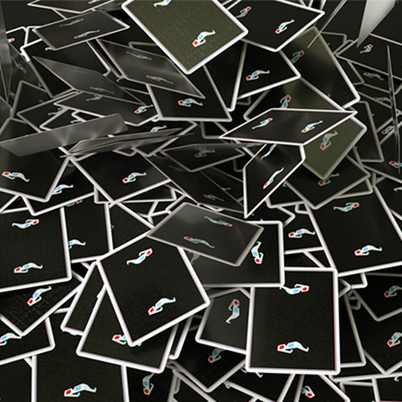 Дизайн рубашки вдохновлен винтажными 3D-очками и снабжен системой маркировки. В колоду входи 2 джокера (один из которых с предсказанием и карта с двойной одинаковой рубашкой.
