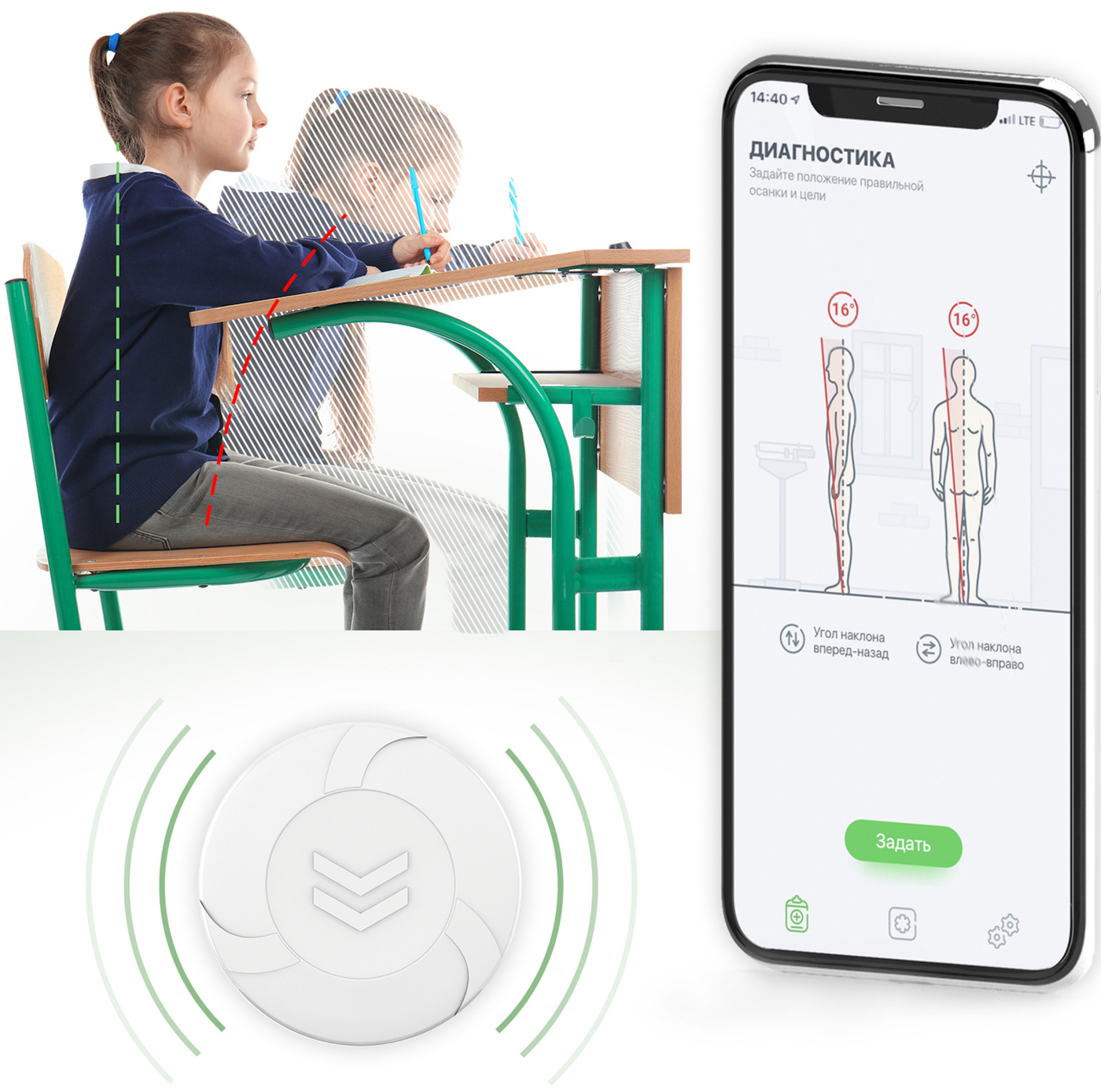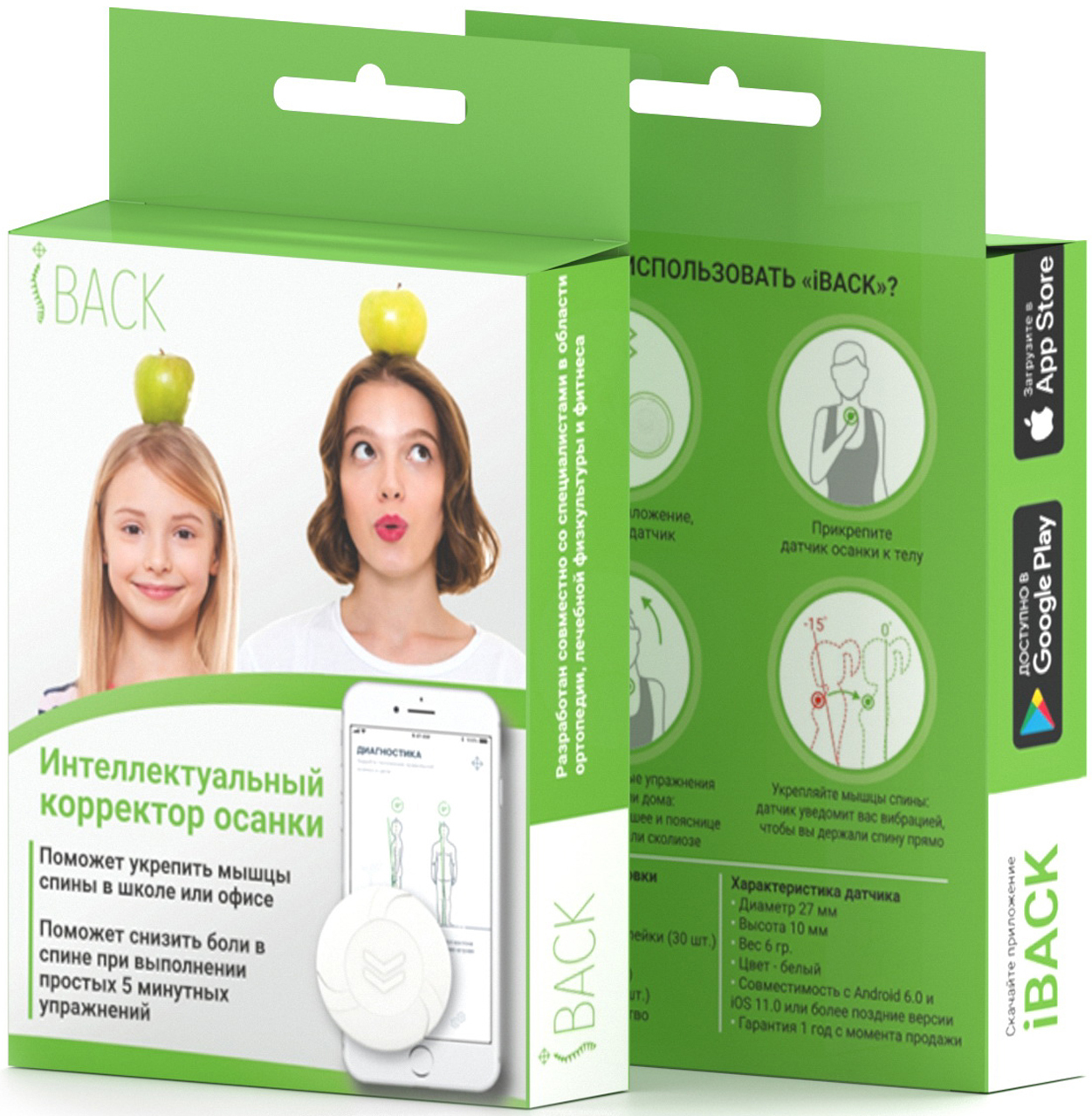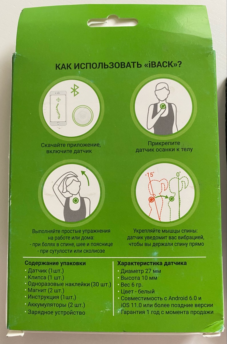 «iBACK» - интеллектуальный корректор осанки для взрослых и детей:- Исправление осанки за 1 месяц- Снижайте боли в спине выполняя простые 5 минутные упражненияКак работает?1. Скачайте приложение, включите устройство;2. Прикрепите датчик осанки к телу;3. Фо