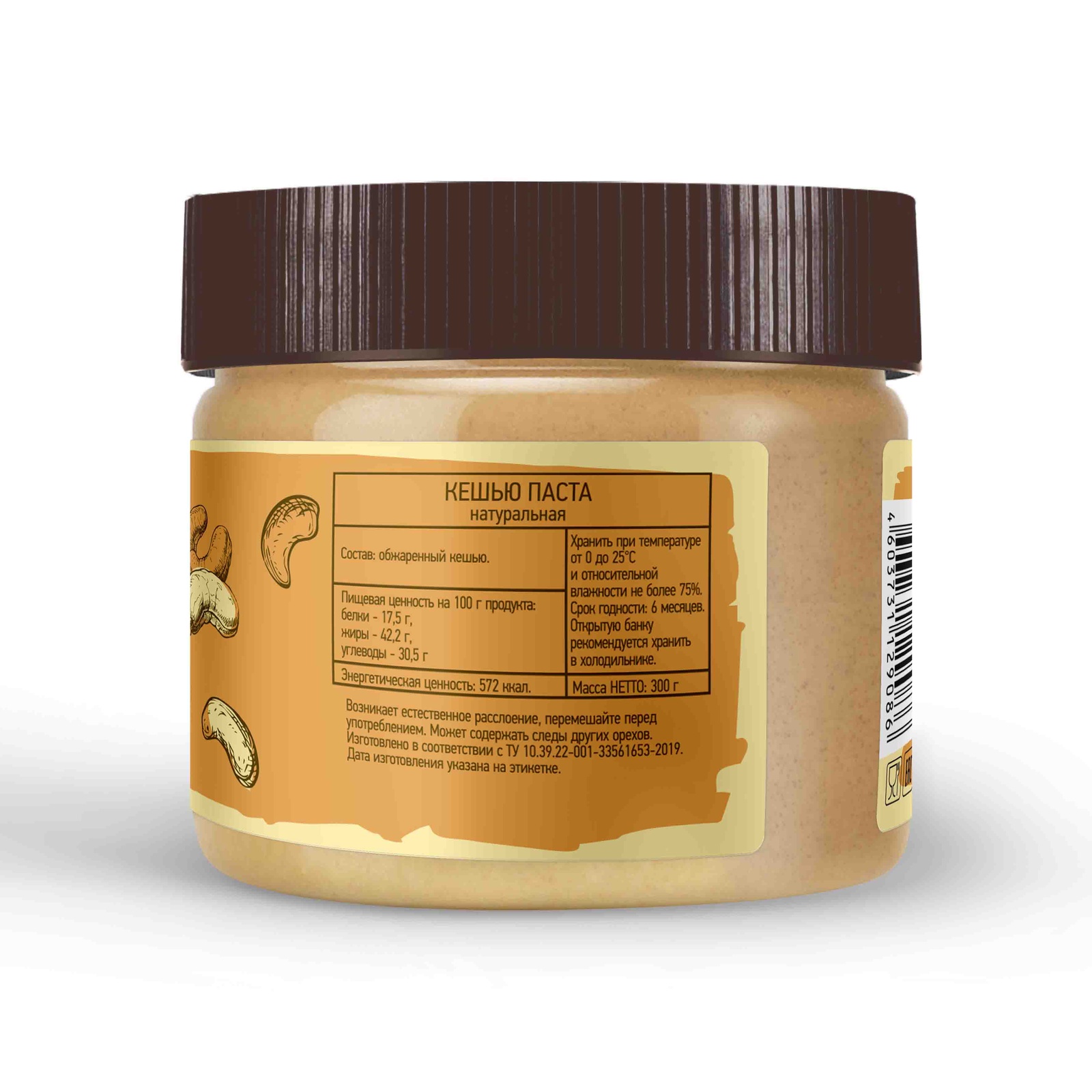 Условия хранения:Хранить при температуре от 0 до 25 градусов С и относительной влажности не более 75%. Открытую банку рекомендуется хранить в холодильникеСостав:обжаренный кешьюКомплектация:Баночка вкусной натуральной кешью пастыОписание:Ореховая паста из