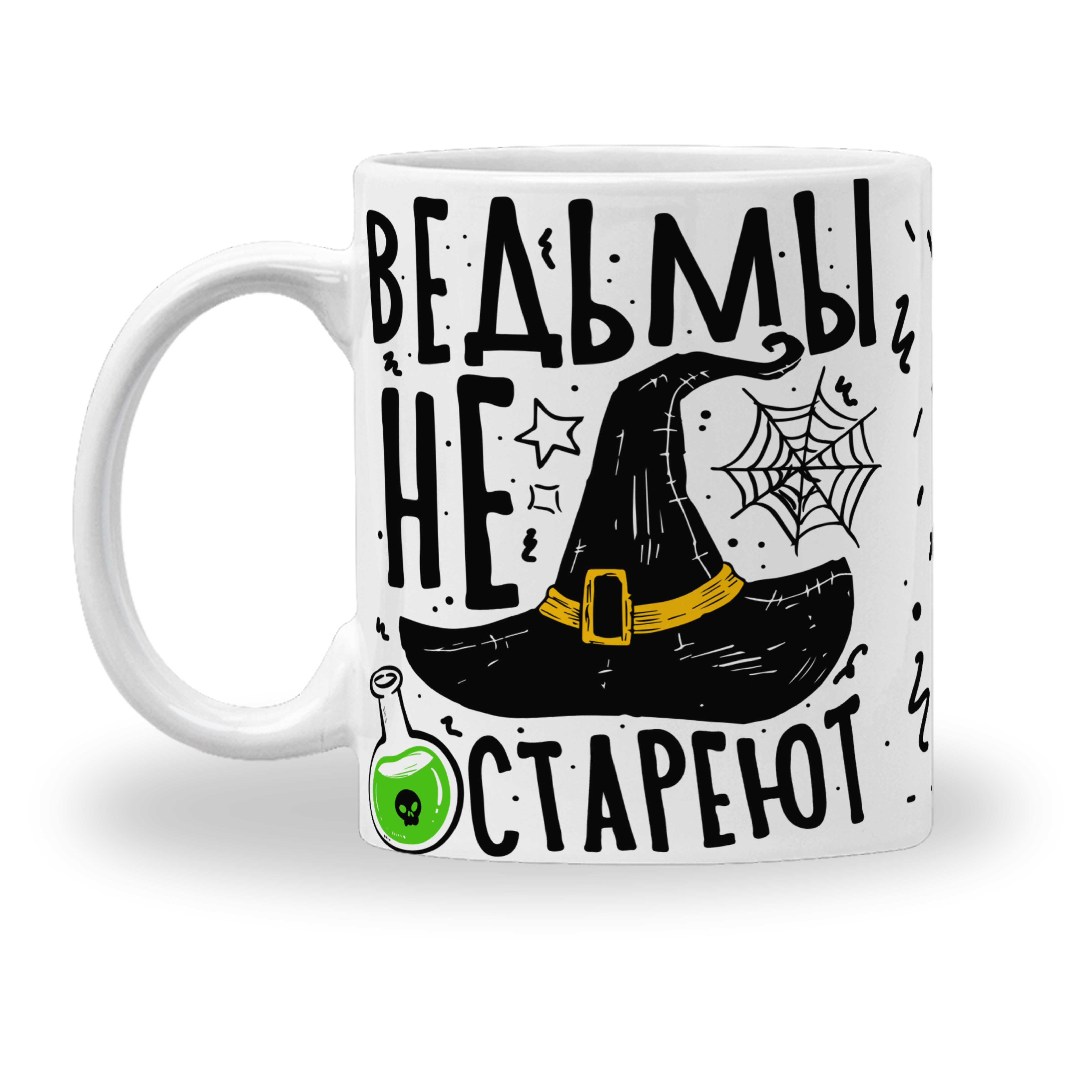 Кружка с принтом "Ведьмы не стареют". Кружка-это предмет, который всегда на виду. А кружка с необычным принтом-это выражение мыслей, настроения, да и просто крутой авторский подарок. Такая кружка всегда будет вызывать эмоции и никогда не затеряется на пол