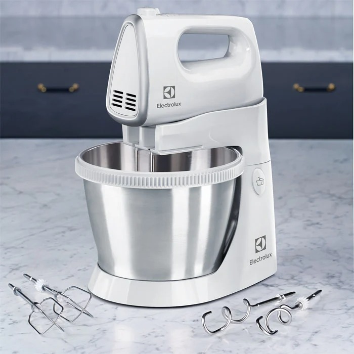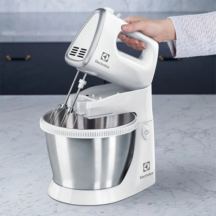 Удобный миксер с дежой. Ручной миксер должен быть съемным, т. Е. Его можно использовать и без дежи. Стильная металлическая миска для смешивания вращается. На выбор предлагается пять скоростей, а также импульсная функция, при которой вы можете быстро испол
