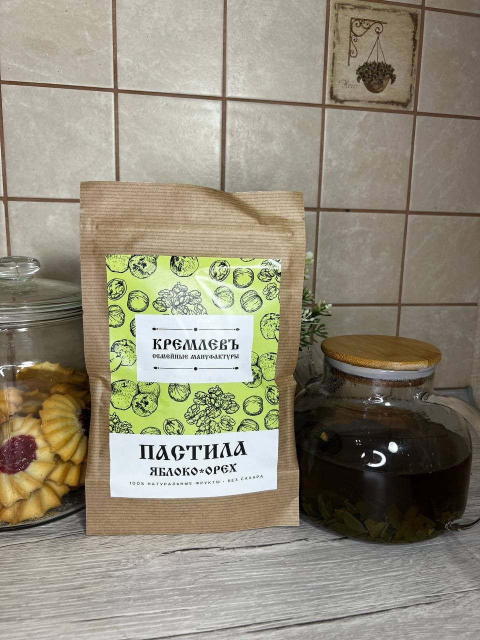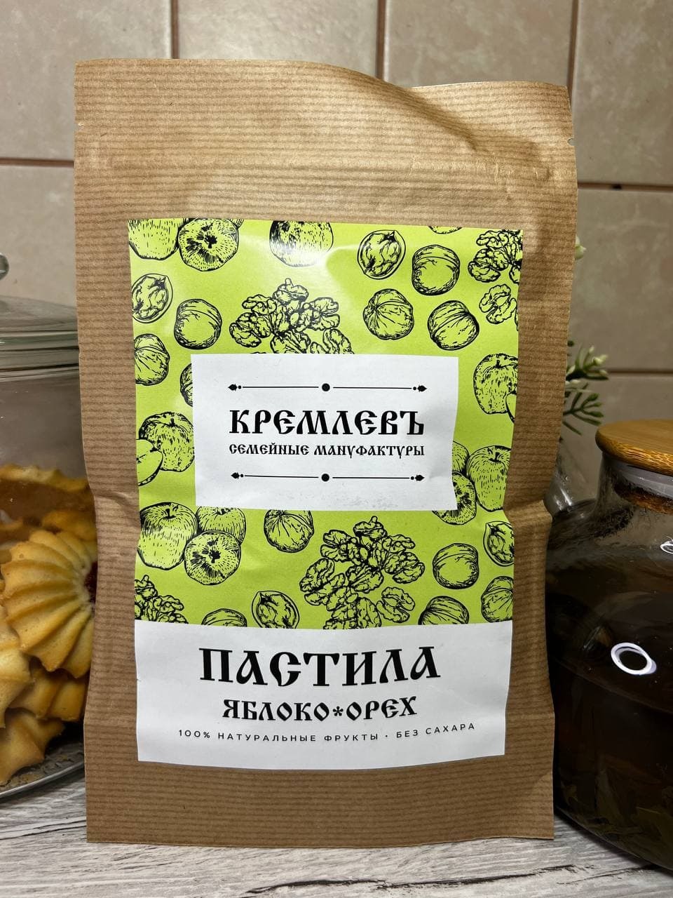 Яблочная с грецкими орехами пастила без сахара от семейной мануфактуры "КремлевЪ" идеальная сладость для веганов, людей следящими за своим здоровьем и детей.Наша пастила - это диетический продукт, содержащий минимальное количество калорий и углеводов, при
