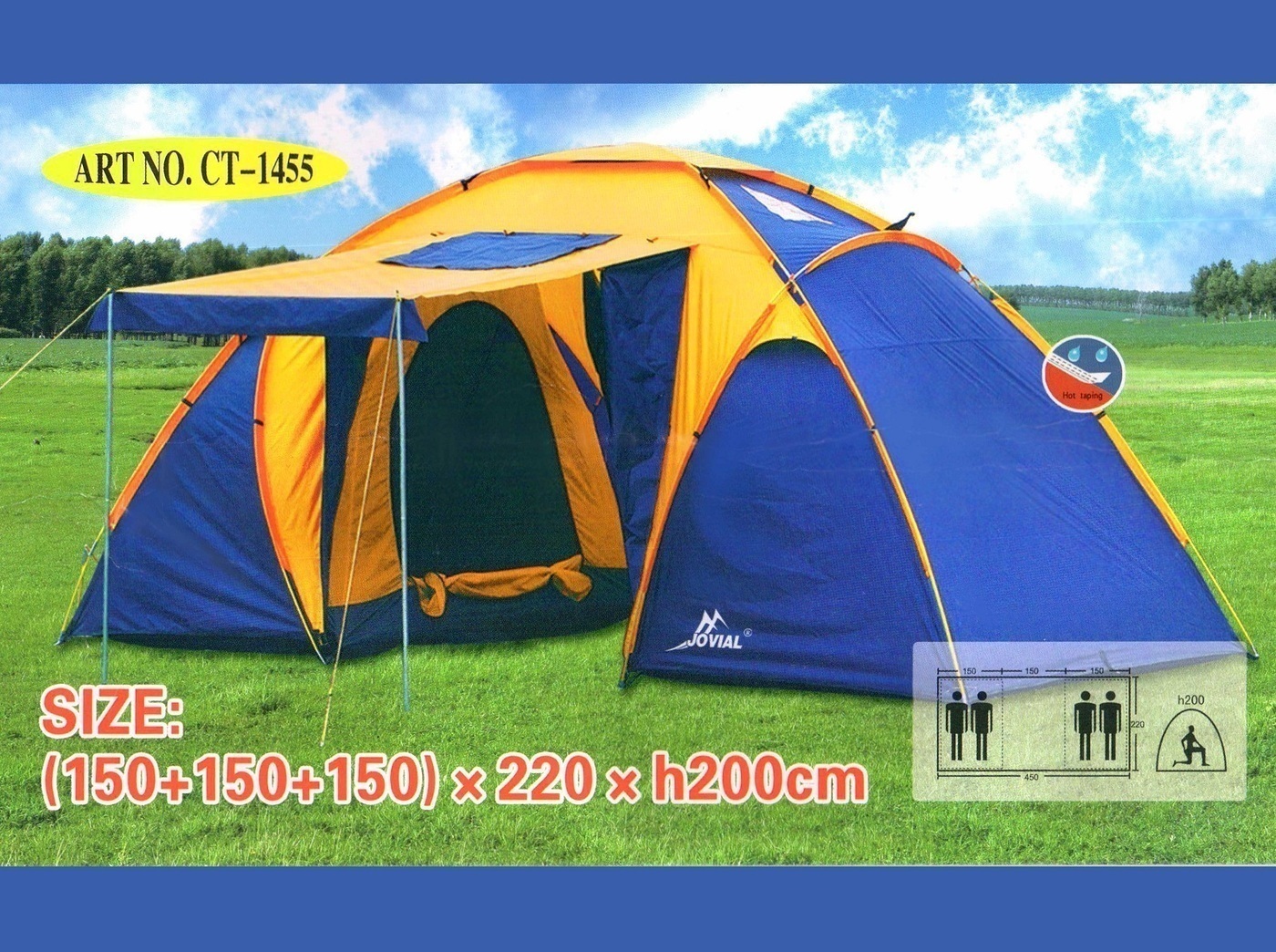 ART № CT-1455 - это новая, раздельная современная, надежная, легкая ( 5 кг.) и качественная туристическая палатка для отдыха. Сборная 2 секционная палатка ART № CT-1455 является чуть ли не главным фактором снаряжении туриста и будет залогом комфортного о
