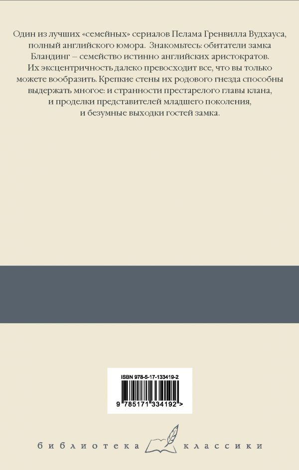 Один из лучших «семейных» сериалов Пелама Гренвилла Вудхауса, полный английского юмора. Знакомьтесь: обитатели замка Бландинг — семейство истинно английских аристократов. Их эксцентричность далеко превосходит все, что вы только можете вообразить. Крепкие