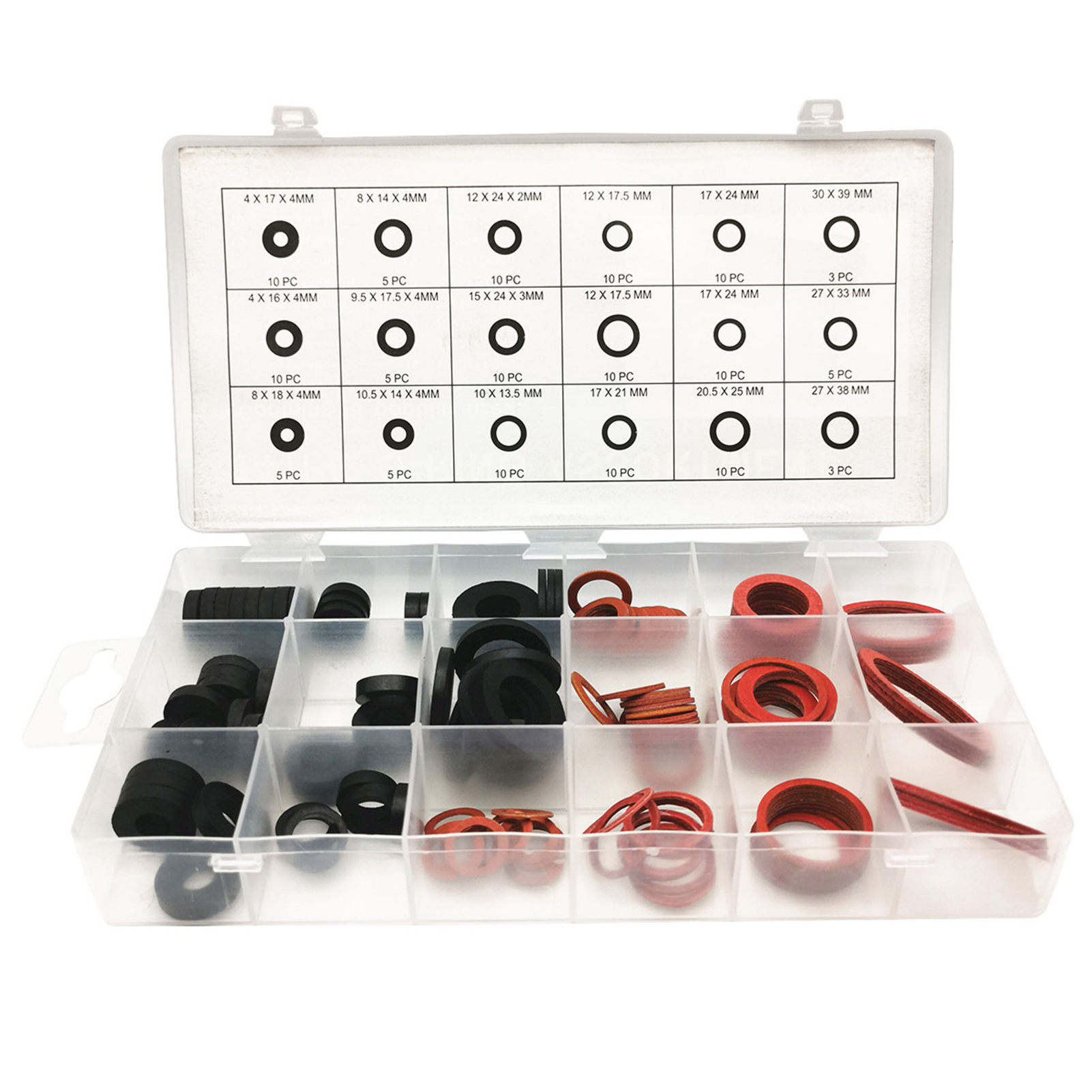 Описание: Все прокладки упакованы в пластиковую коробку, чтобы держать их организованными, вы легко найти то, что вам нужно .. Материал: Красная стальная бумага. Размер детали: Размер коробки: 22 см x 11,2 см x 3 см/8,67 "x 4,41" x 1,18 "(прибл.).