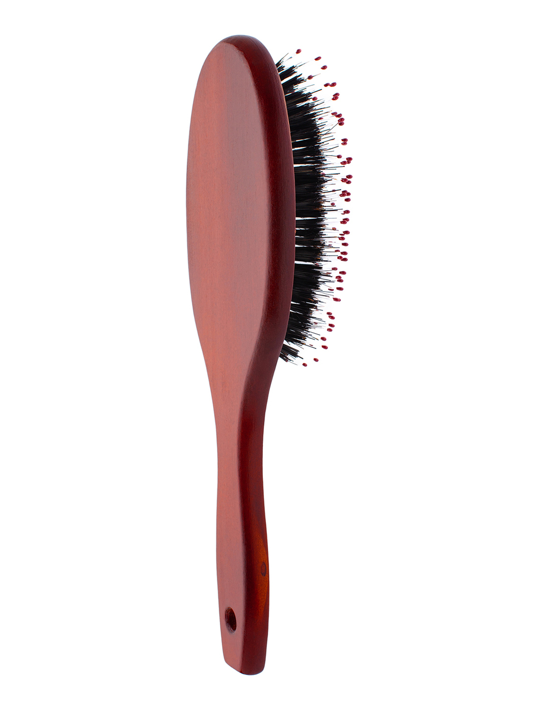 Массажная щетка с деревянным корпусом, силиконовыми зубчиками и пластиковой щетиной выполнена в коричневом цвете. Дерево в качестве основы придает расческе прочность, обеспечивая длительный эксплуатационный срок.Пластиковая щетина делает расческу незамени