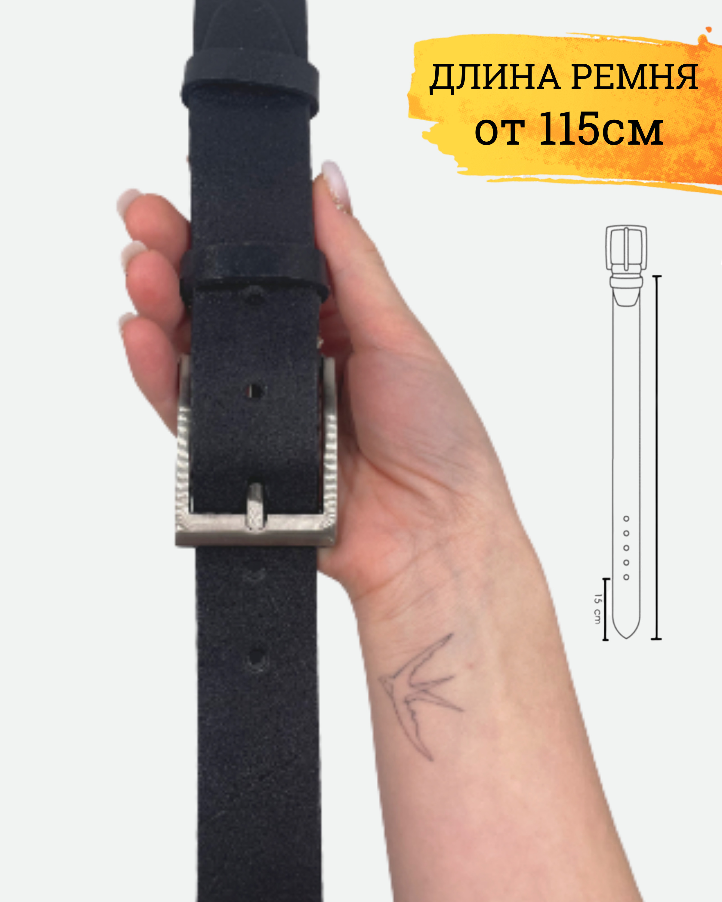 Параметры модели на фотоМужской ремень кожаный, у модели по размеру бедер