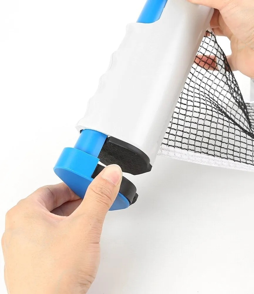 Универсальная быстроустанавливаемая сетка для настольного тенниса (пинг понга) с пластиковыми стойками.Сетка намотана на обратный механизм пластиковой стойки.Максимальная ширина стола: 2 м.Максимальная толщина стола: 5 см.Размер пластикового корпуса: 15,5