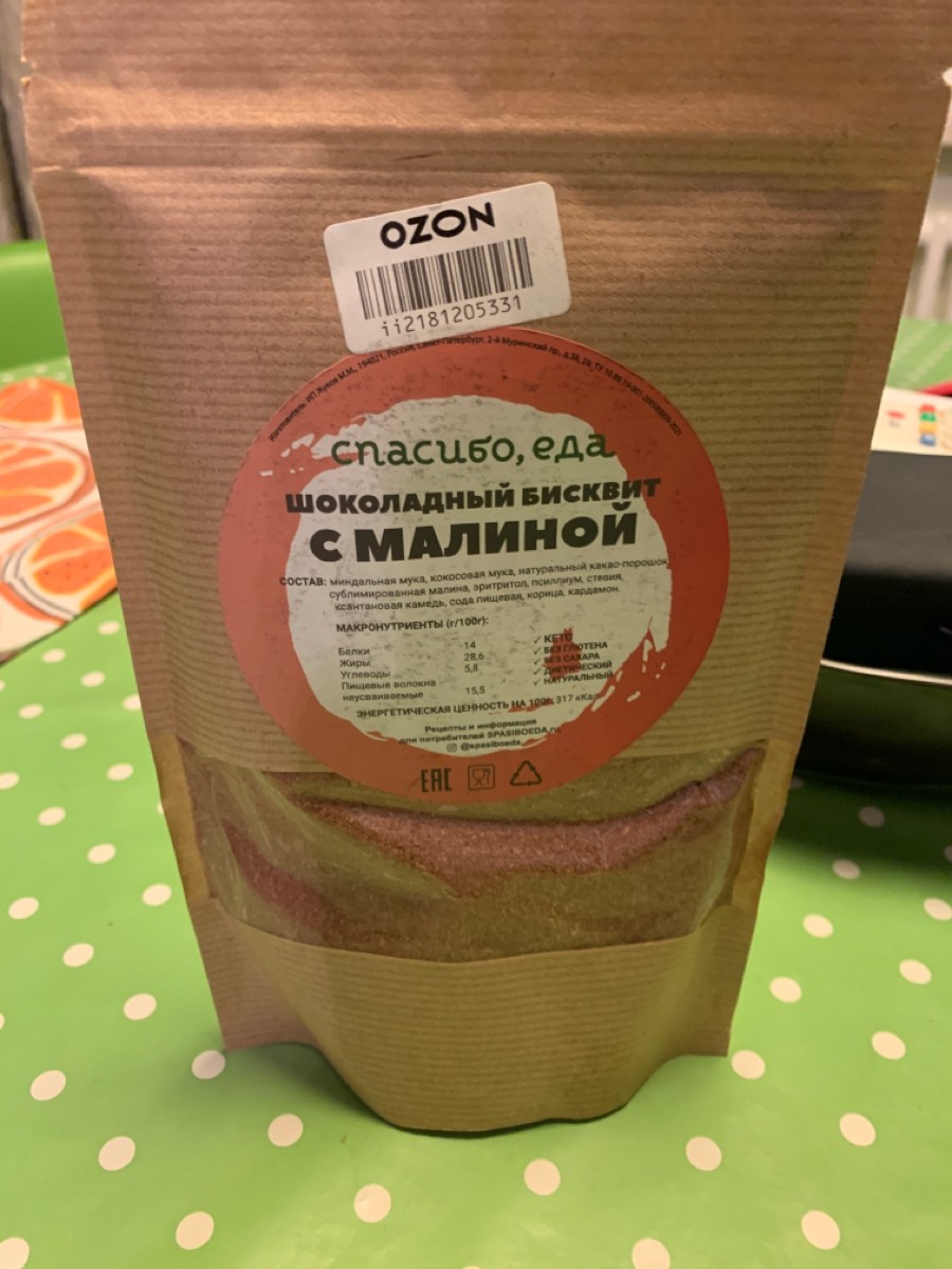 Состав:миндальная мука, кокосовая мука, какао-порошок, сублимированная малина, псиллиум, эритритол, стевия, ксантановая камедь, сода пищевая, корица.Условия хранения:Хранить при температуре не выше +25℃ и относительной влажности не более 60%.Комплектация: